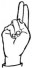 На ћирилици написано ИГЊАТ РАШЕТА састоји се из 11 слова [?]. Исписано ћириличном једноручном азбуком за глувонеме: